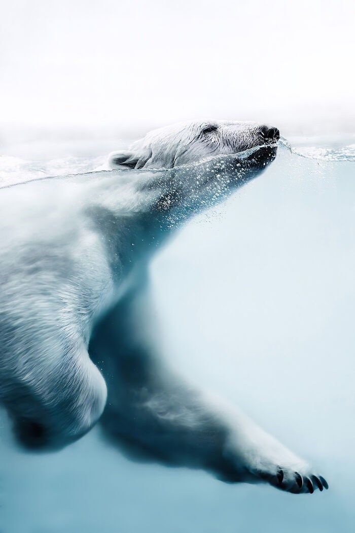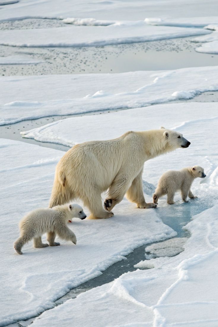 불곰과 가까운 친척이지만, 북극곰은 완전히 얼음 생활 전문가입니다.