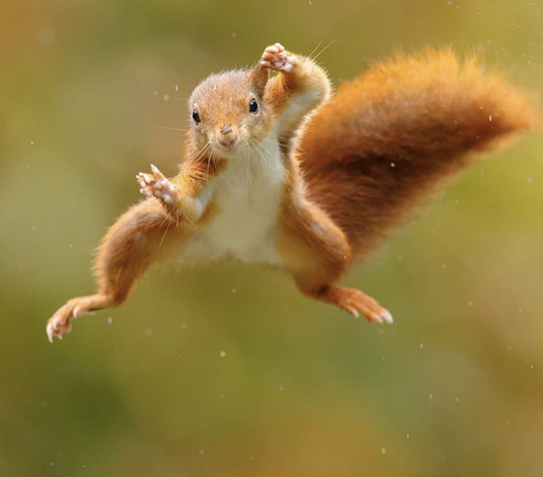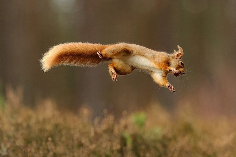 가을 숲 청설모, 청설모 점프, 숲속 동물 사진, 계절의 이웃