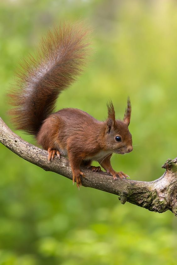 | 청설모 붉은빛 털결과 길게 흐르는 꼬리. 나무 사이를 나는 듯 오가며 숲에 활기를 더한다. |