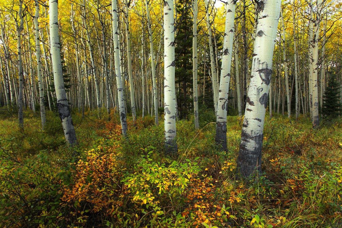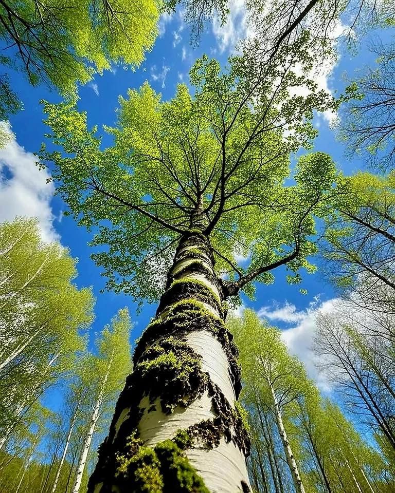 숲 가장자리, 흰 줄기 사이로 새들이 날아오를 때