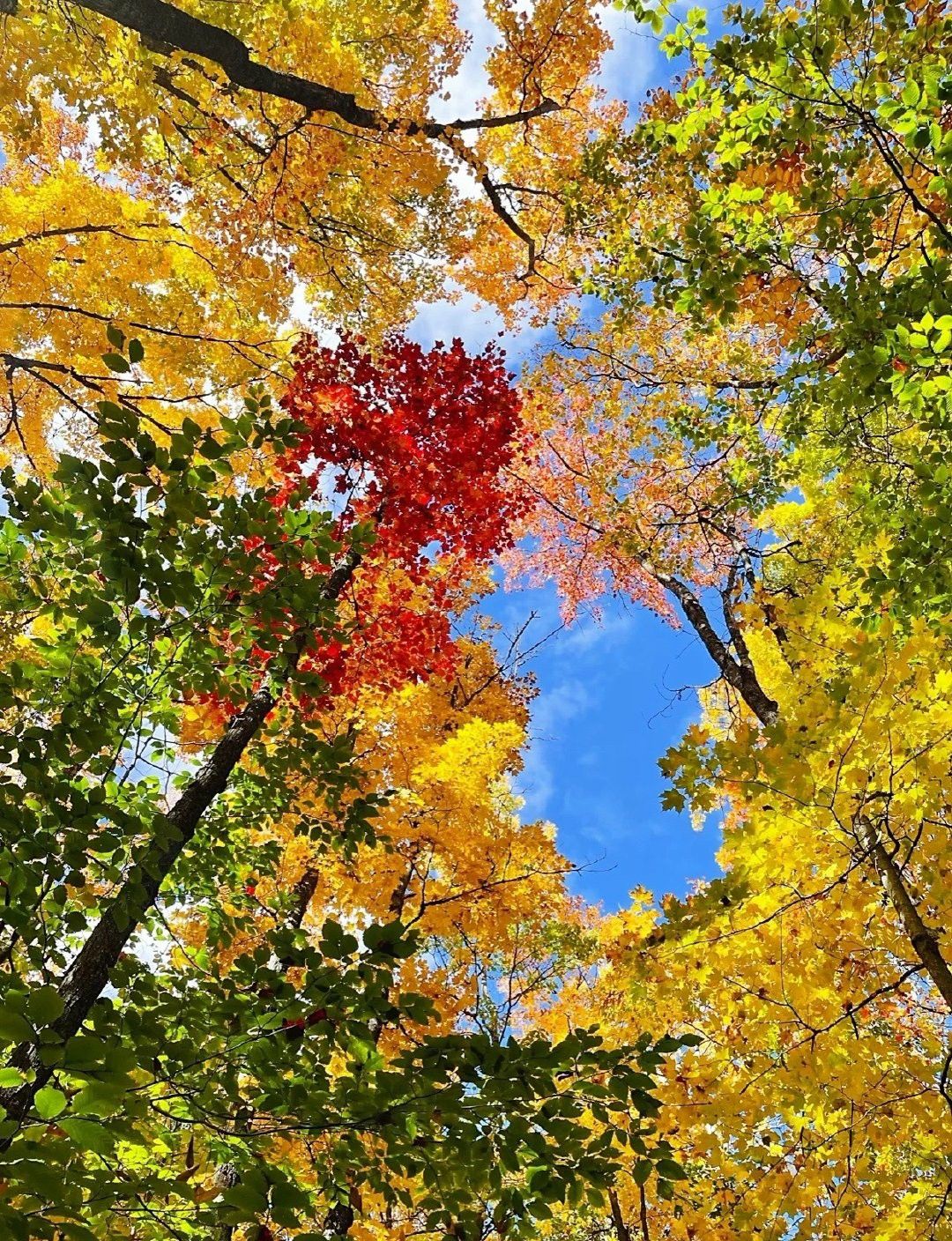 짙은 솔잎 숲 사이로 곧게 선 자작나무가 독특한