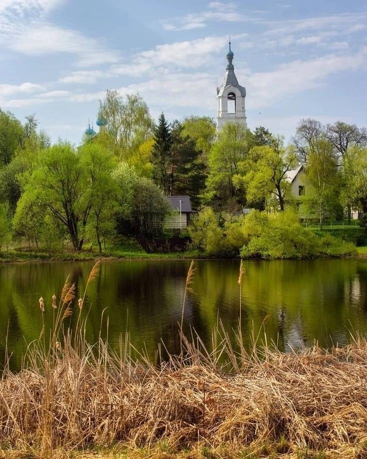 작은 마을 근처, 자작나무 숲과 교회의 첨탑이 맞닿은 오후